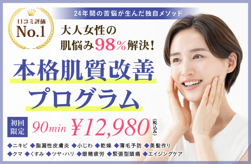 しわ・たるみといった年齢による肌のお悩み・繰り返す大人ニキビに加え、緊張型頭痛・眼精疲労・肩こりなど、顔まわり以外のお悩みにも対応しています。